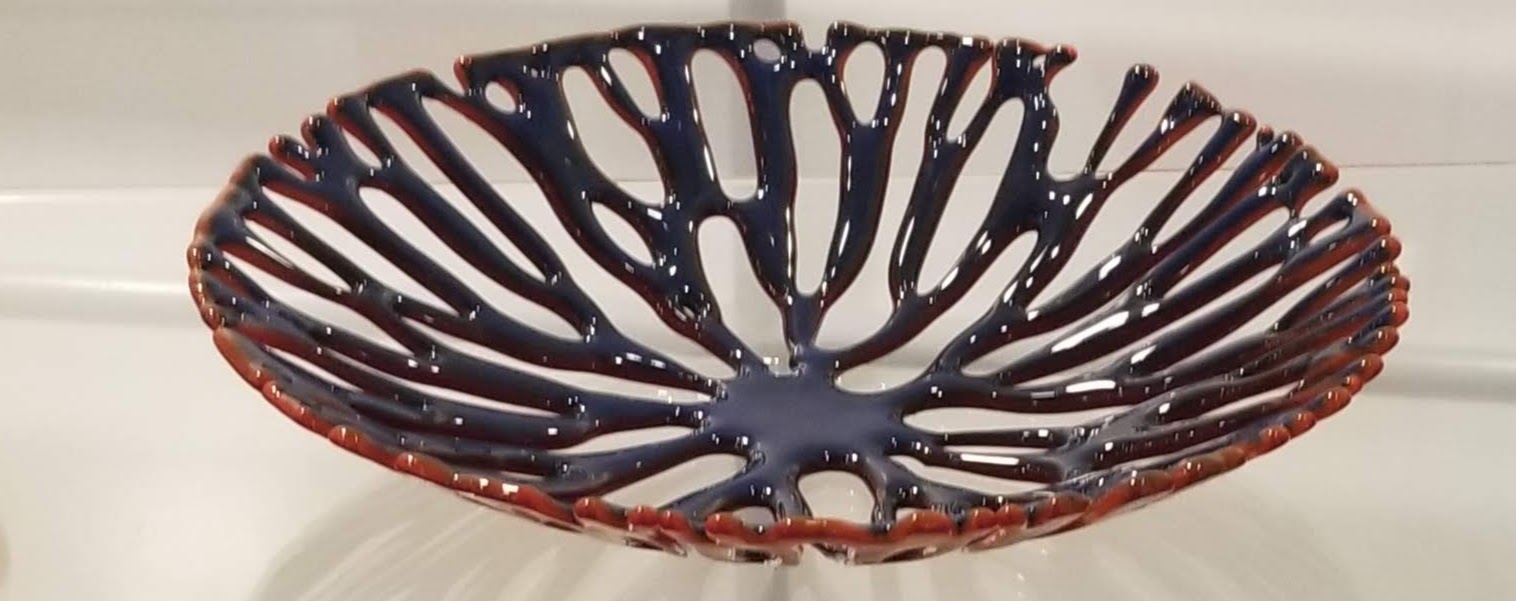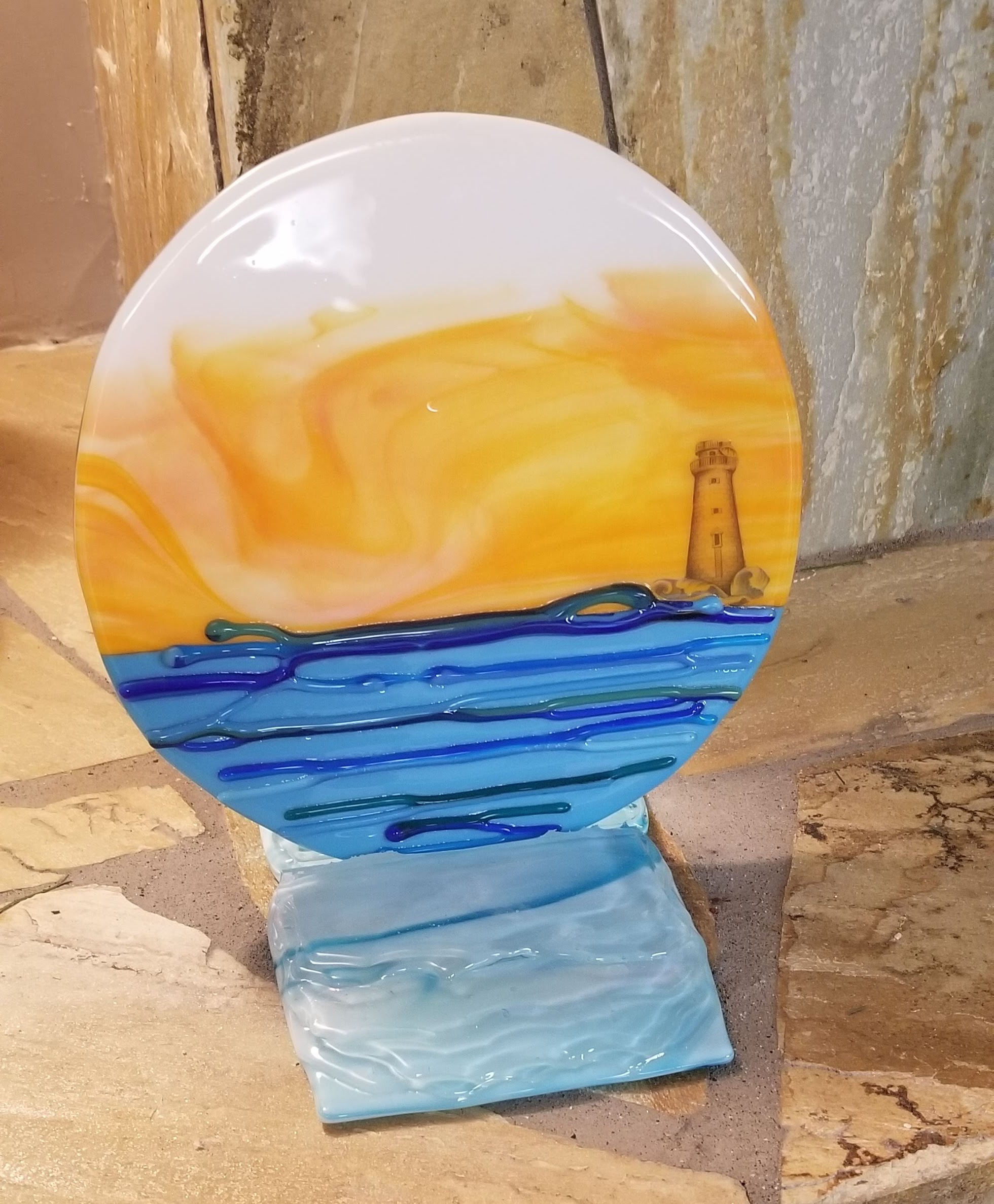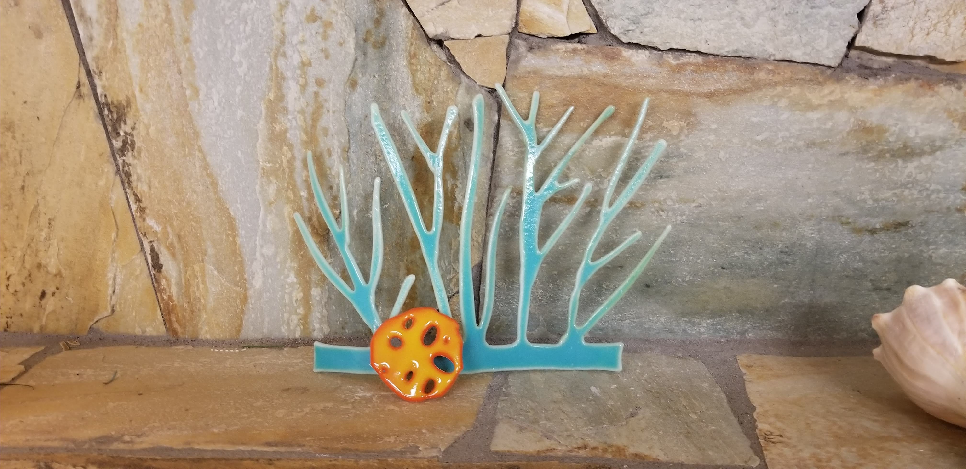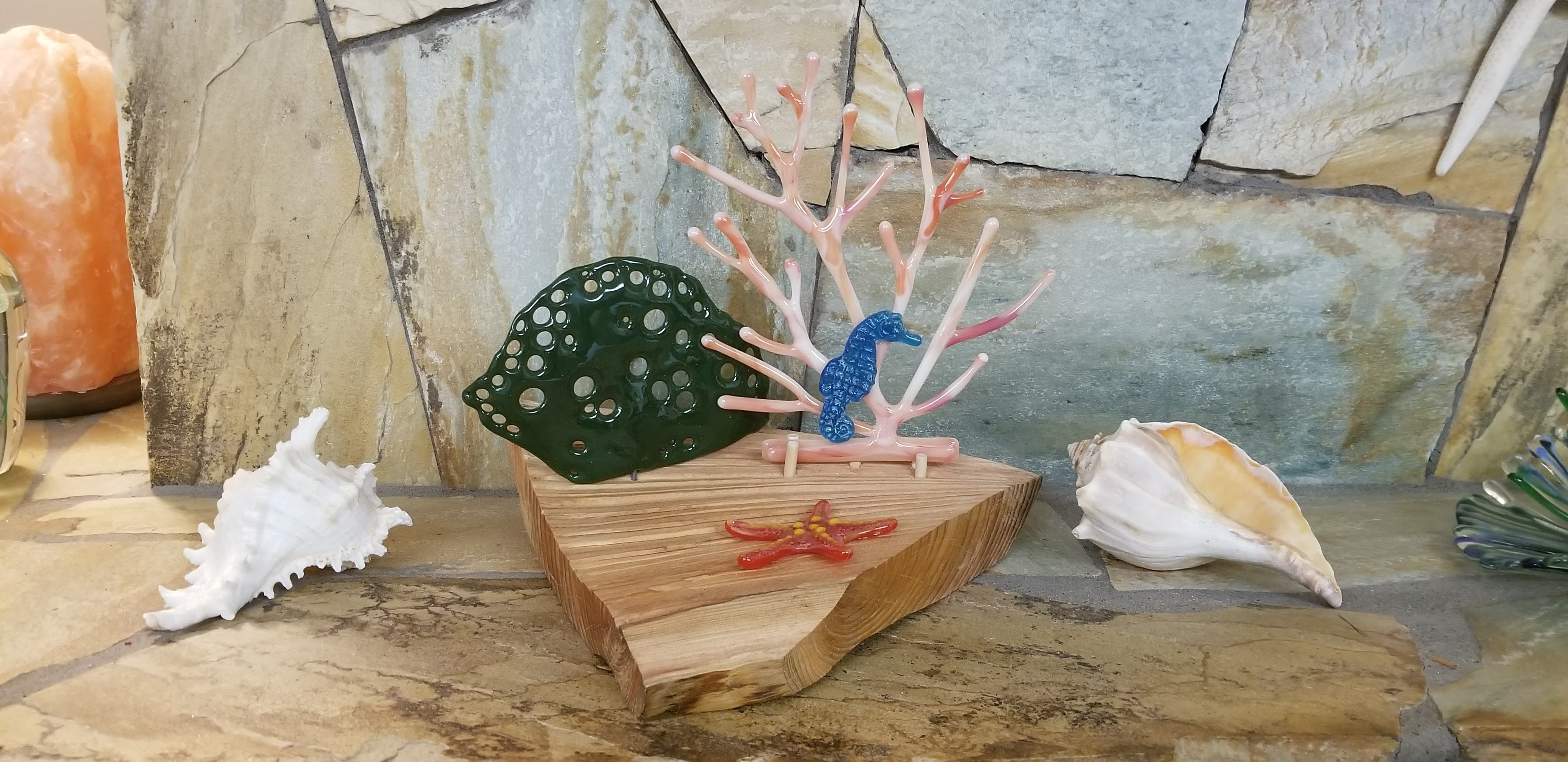 Coral Sea Sculpture, on a wood base $129 Wood base is 43 cm x 24 cm and glass is 24 cm high. Glass can be taken out for shipping, storage